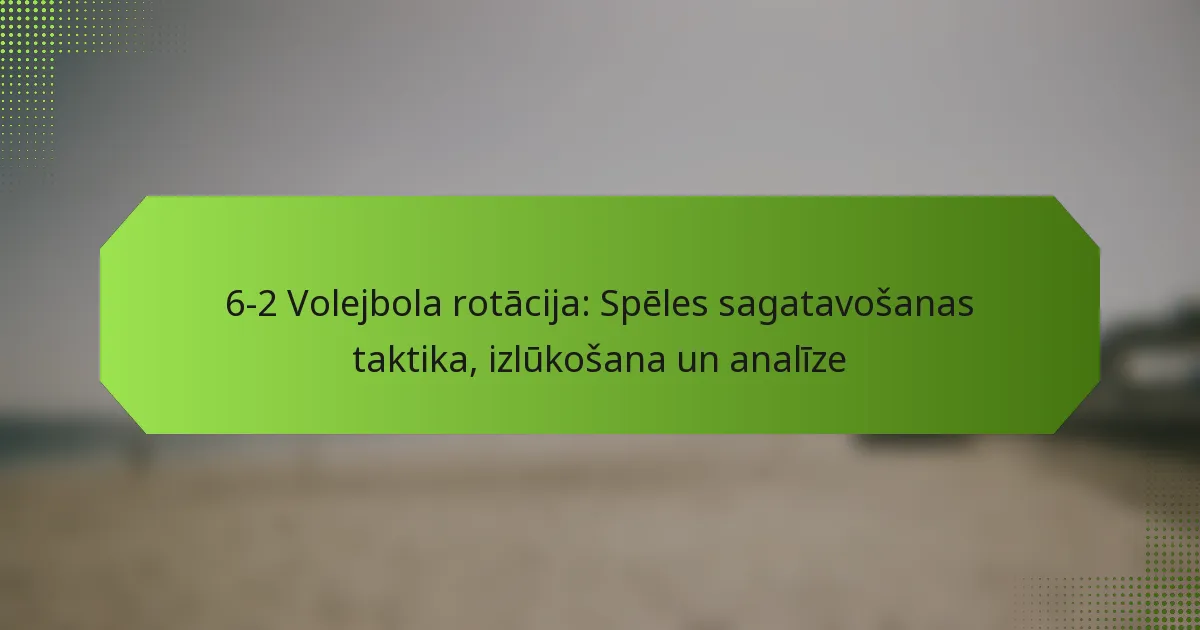 Sagatavošanās spēlēm, izmantojot 6-2 rotāciju, ietver stratēģisku plānošanu, efektīvus vingrinājumus un skaidru izpratni par komandas dinamiku. Šī rotācija ļauj līdzsvarot uzbrukumu un aizsardzību, maksimāli izmantojot spēlētāju stiprās puses, vienlaikus nodrošinot efektīvu komunikāciju laukumā.