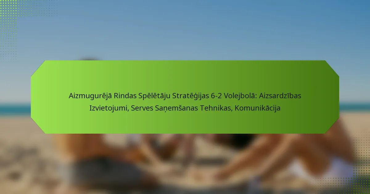 Aizmugurējā Rindas Spēlētāju Stratēģijas 6-2 Volejbolā: Aizsardzības Izvietojumi, Serves Saņemšanas Tehnikas, Komunikācija